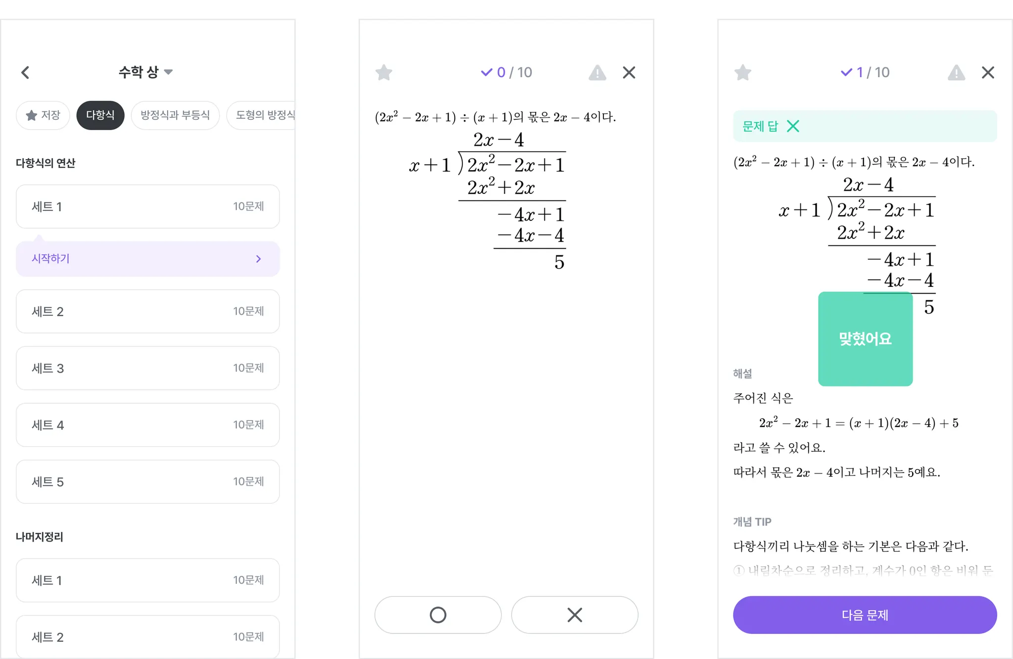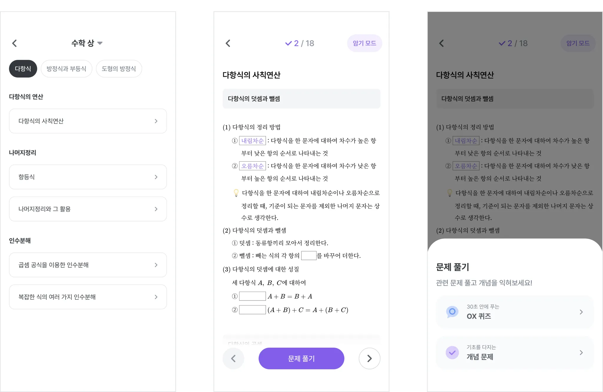 개념 문제를 O,X로 답을 맞히며 가볍게 학습할 수 있어요.