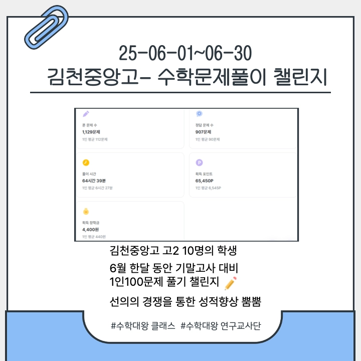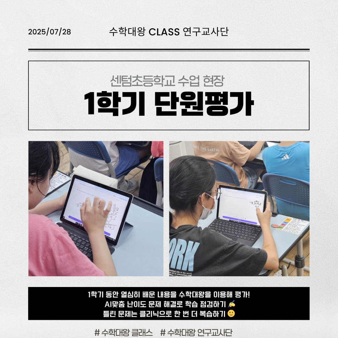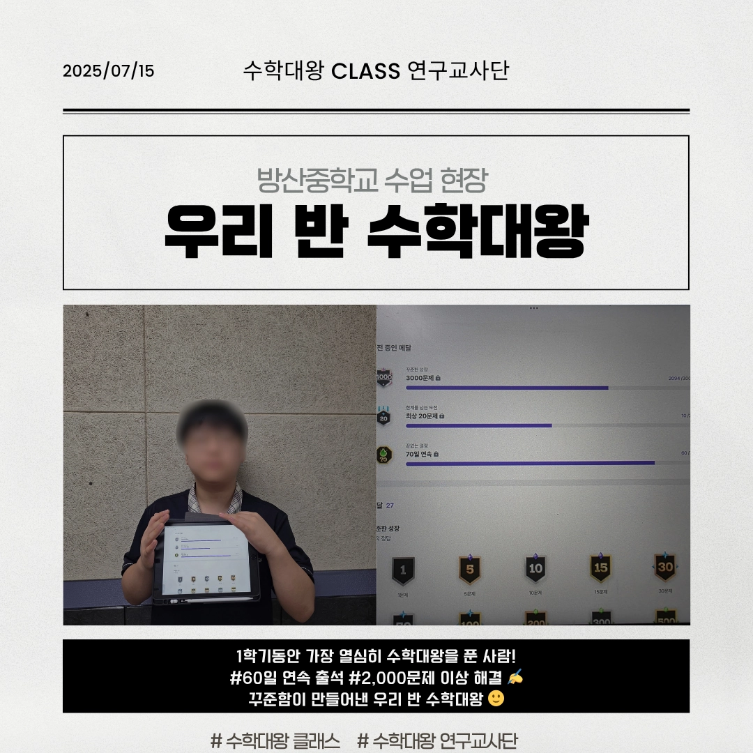 따로 사교육을 받지 않는 학생이 시키지 않아도 집에서 혼자 수학대왕 문제를 풀며 공부해서 최상위권을 유지하는 모습도 인상적이었습니다.” - 구리시 OO초 김OO쌤