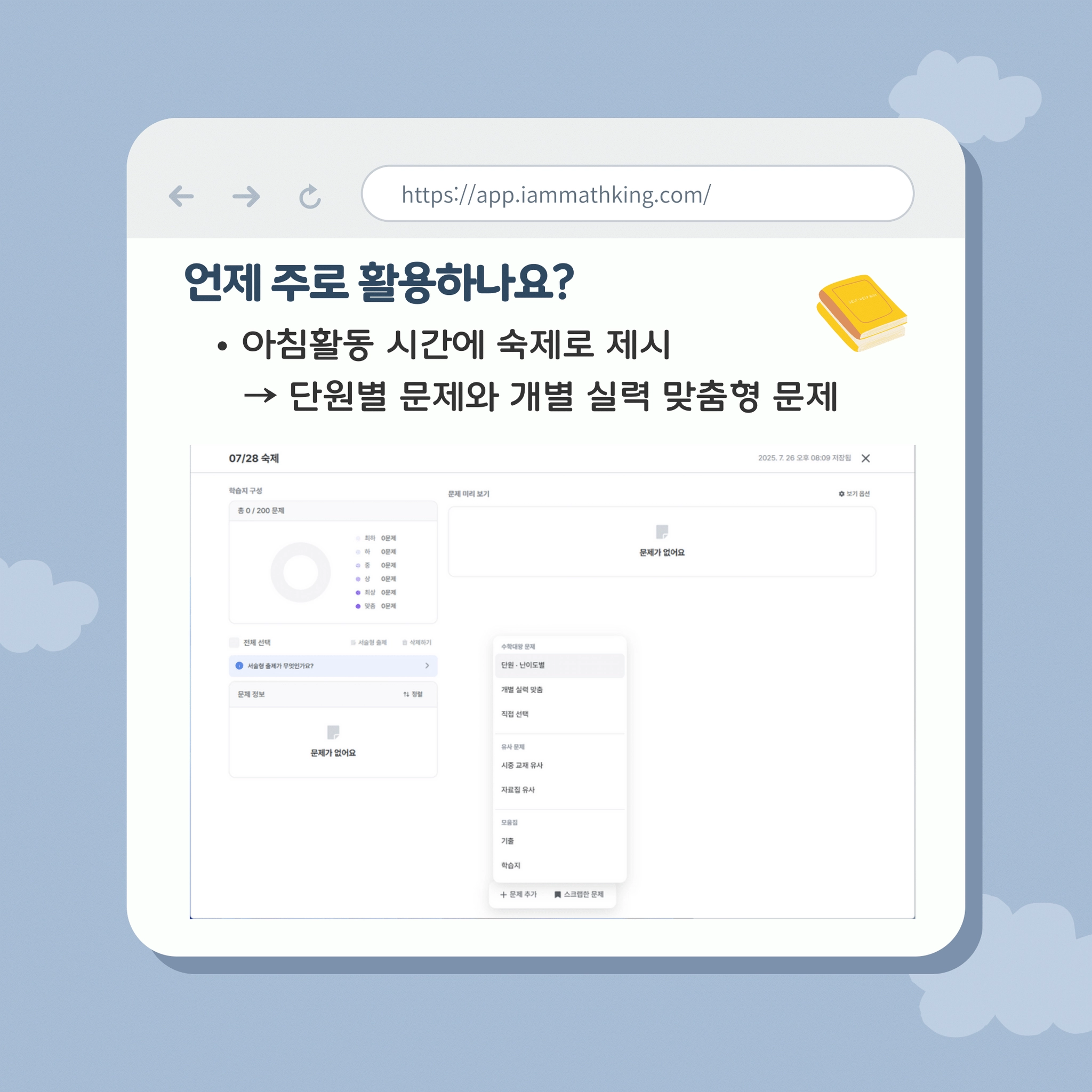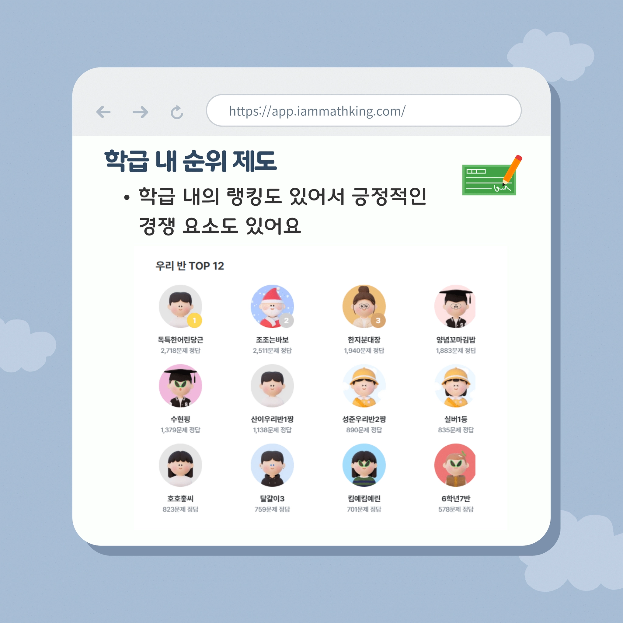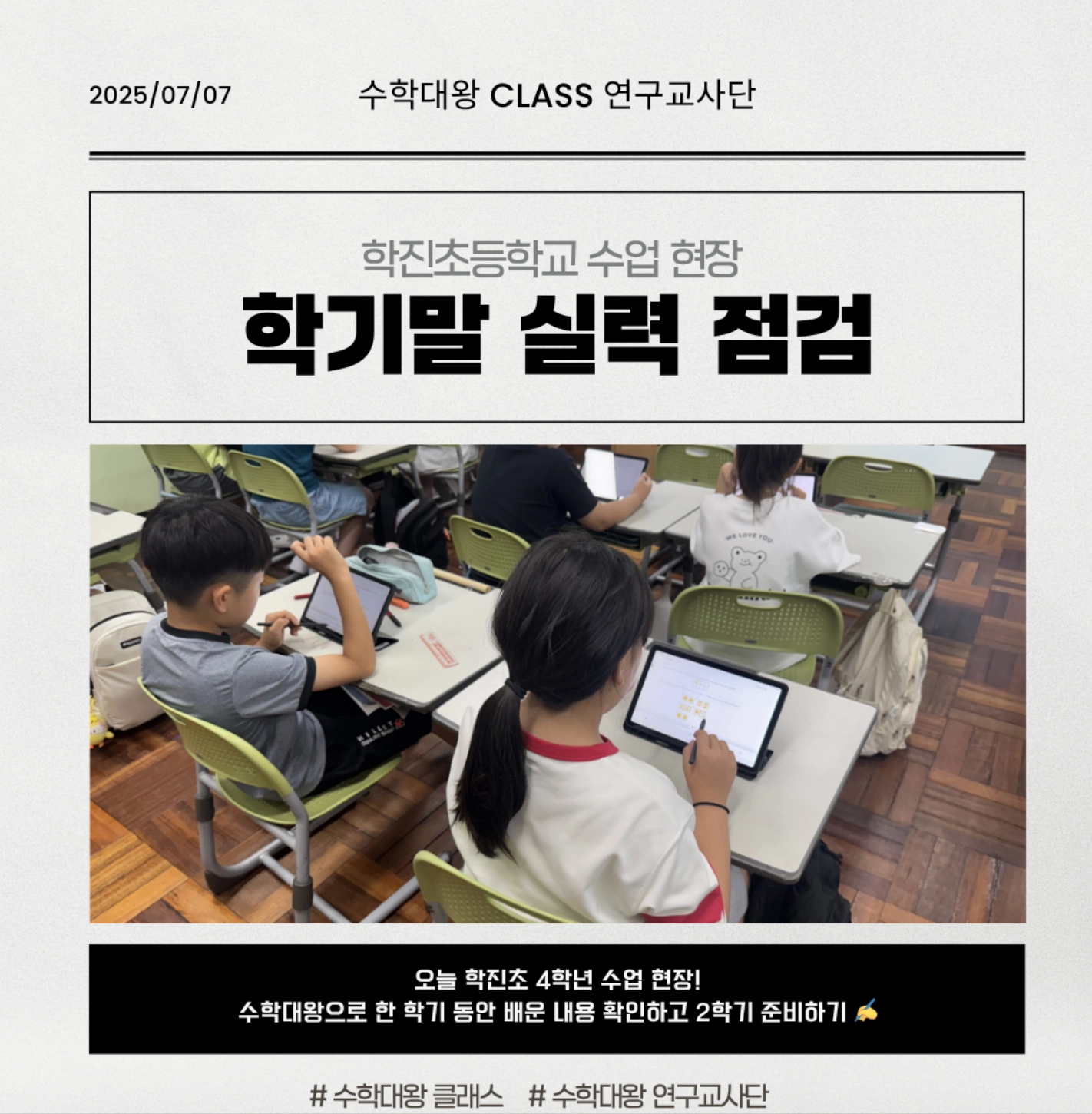 따로 사교육을 받지 않는 학생이 시키지 않아도 집에서 혼자 수학대왕 문제를 풀며 공부해서 최상위권을 유지하는 모습도 인상적이었습니다.” - 구리시 OO초 김OO쌤