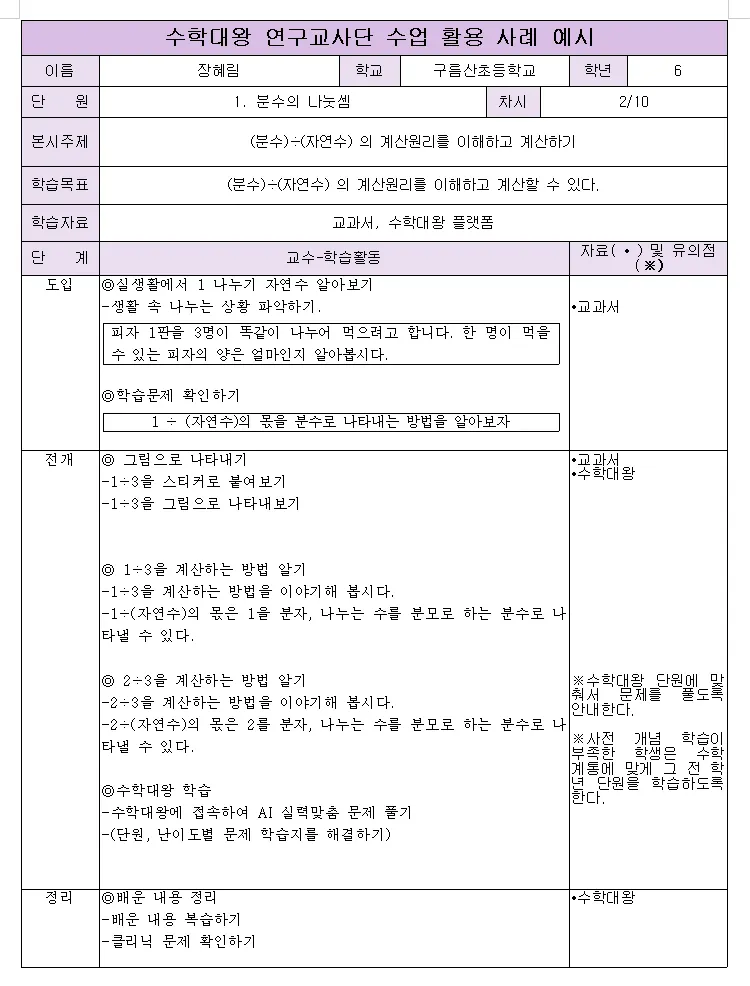 (분수)÷(자연수) 의 계산원리를 이해하고 계산하기