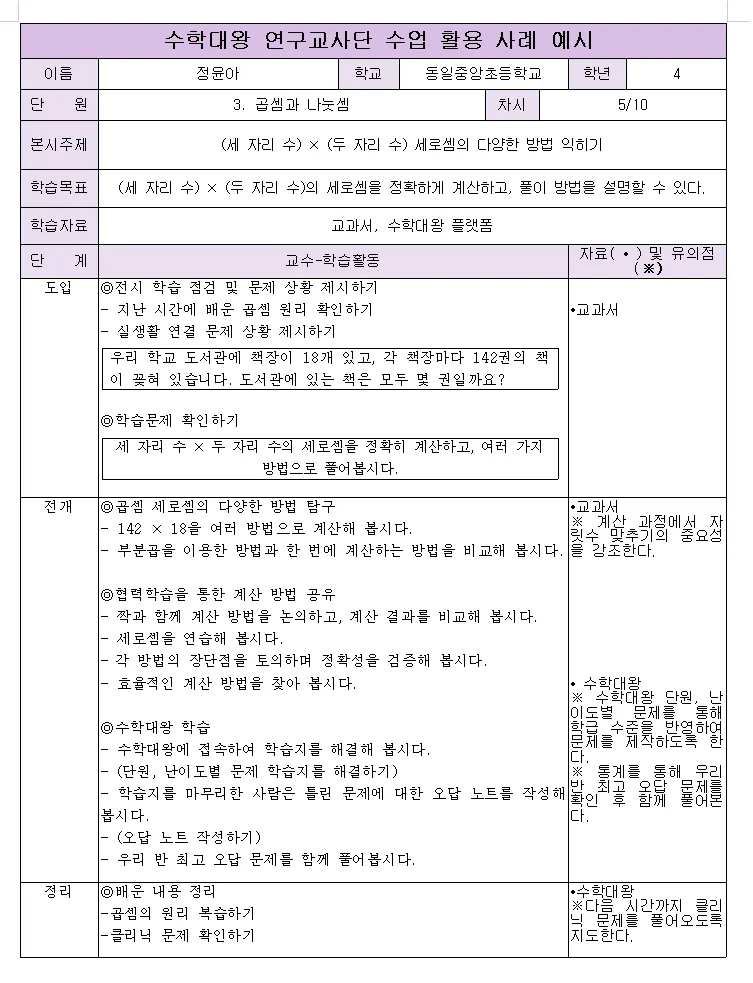 (세 자리 수) × (두 자리 수) 세로셈의 다양한 방법 익히기